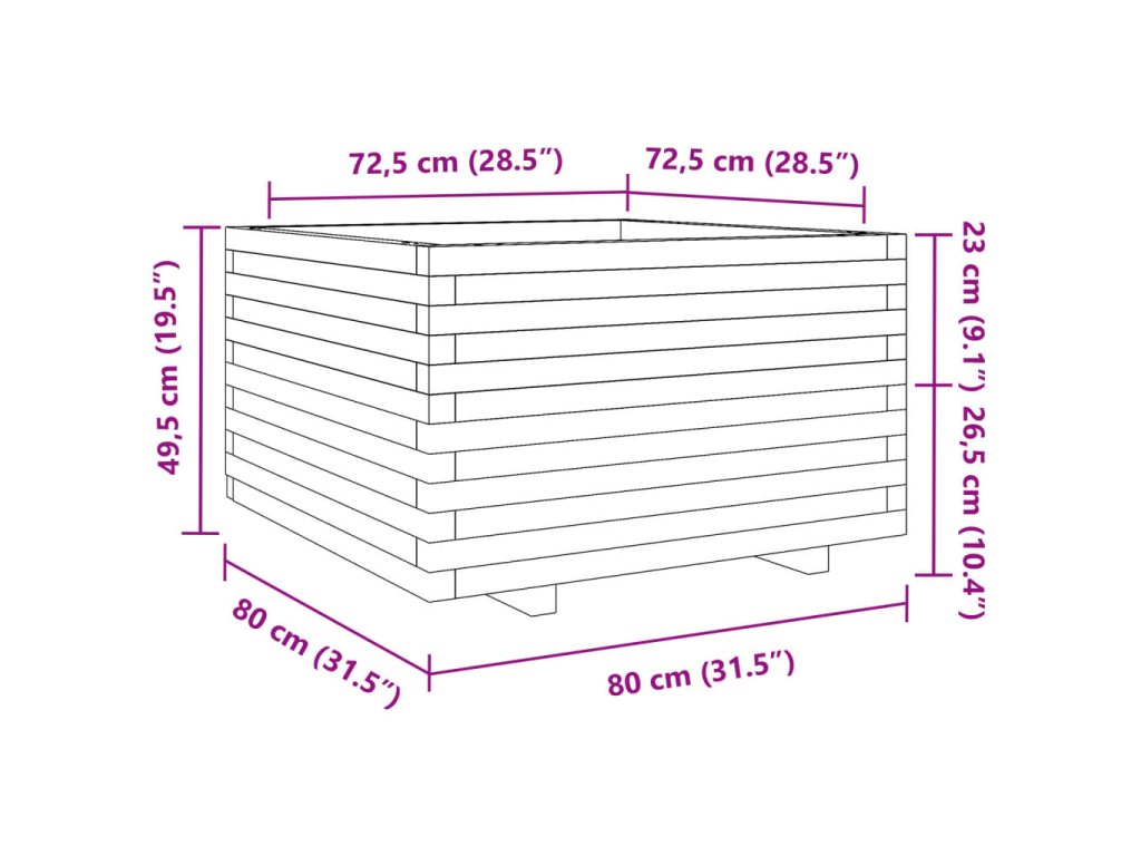 vidaXL Záhradný kvetináč biely 80x80x49,5 cm masívna borovica