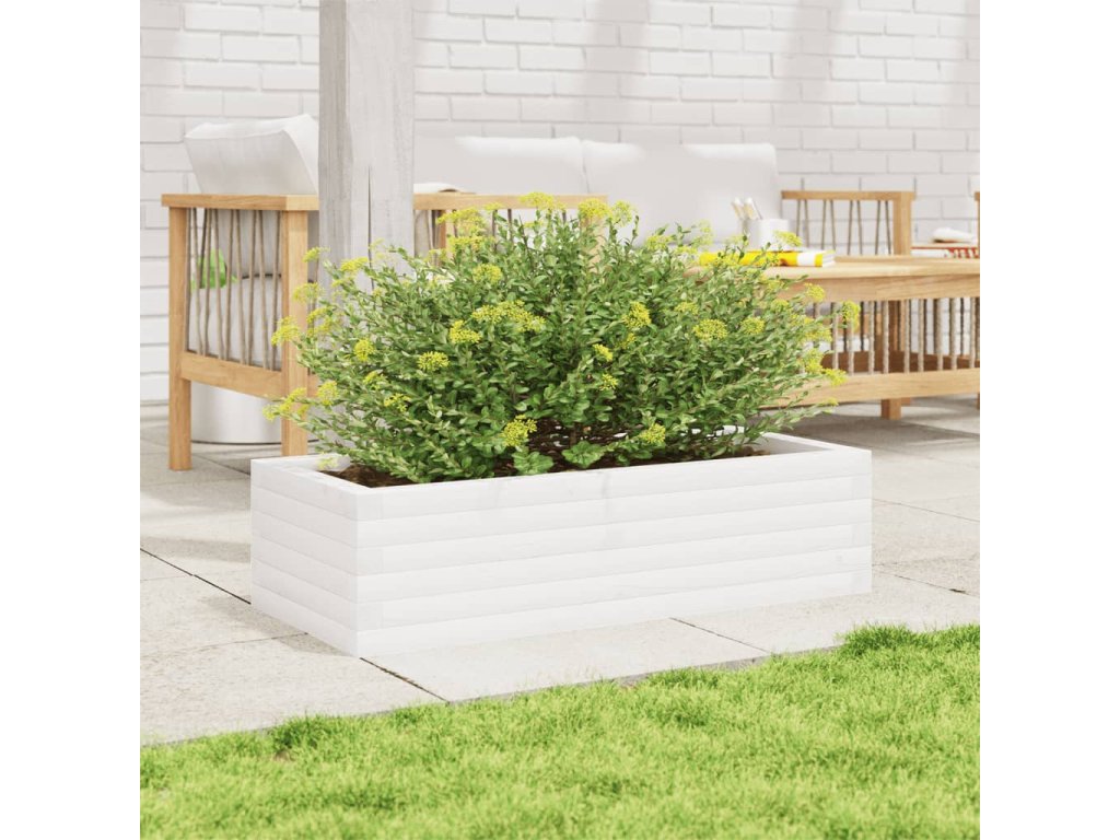 vidaXL Záhradný kvetináč biely 90x40x23 cm borovicový masív