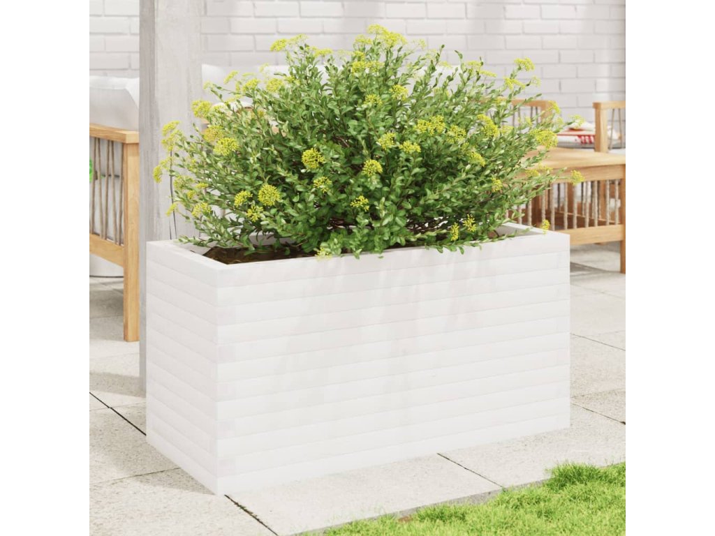 vidaXL Záhradný kvetináč biely 90x40x45,5 cm masívna borovica
