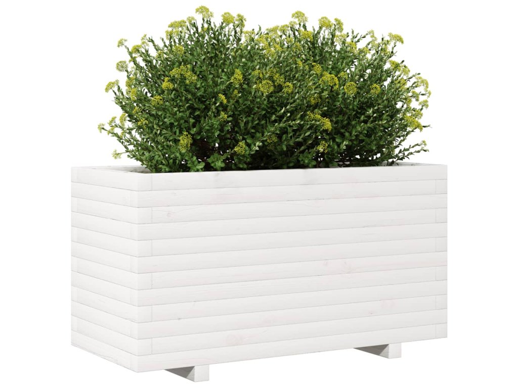 vidaXL Záhradný kvetináč biely 90x40x49,5 cm borovicový masív