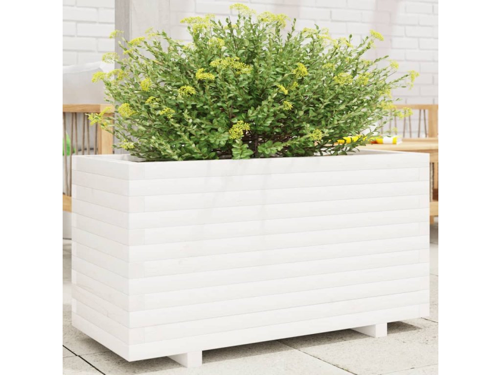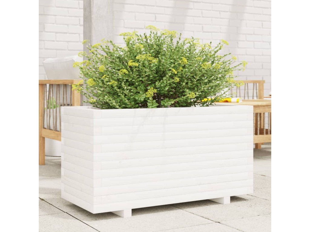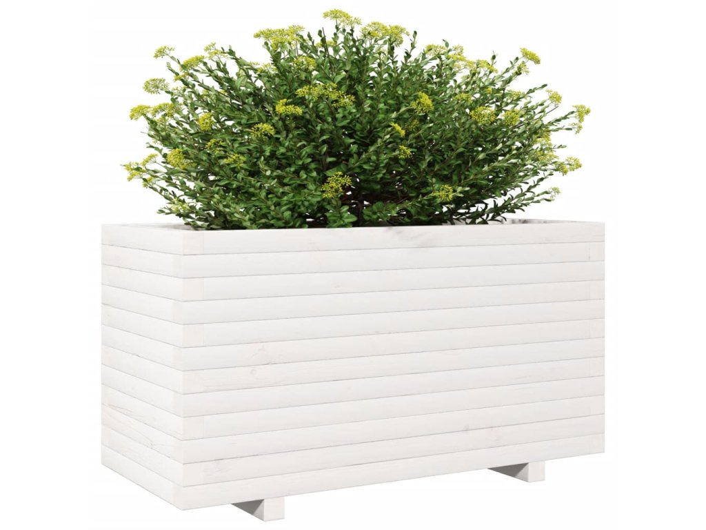 vidaXL Záhradný kvetináč biely 90x40x49,5 cm borovicový masív