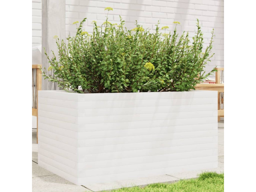 vidaXL Záhradný kvetináč biely 90x60x45,5 cm masívna borovica