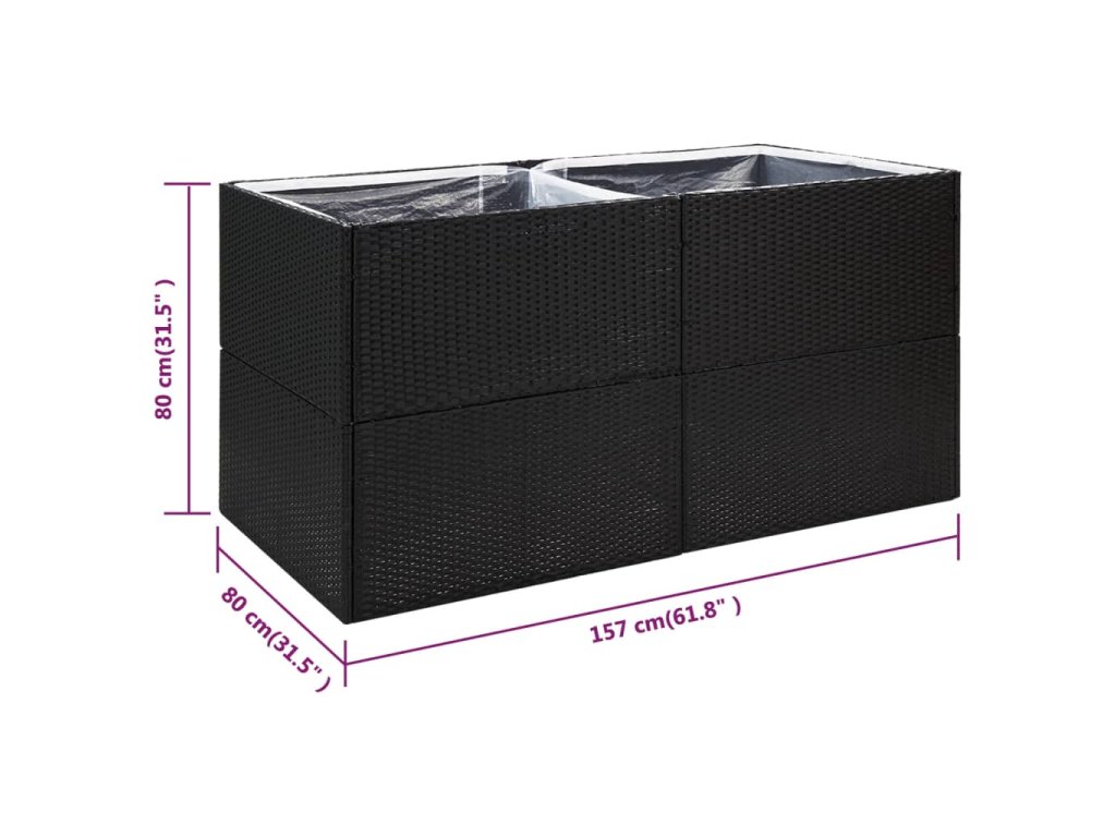 vidaXL Záhradný kvetináč čierny 157x80x80 cm polyratanový