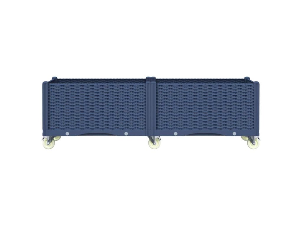 vidaXL Záhradný kvetináč s kolieskami modrosivý 160x50x54 cm PP