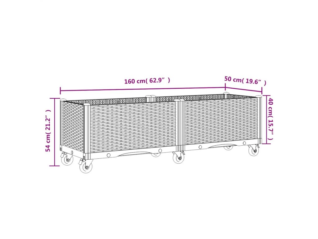 - Jednoduché presúvanie: Tento kvetináč má 4 kolieska, vďaka čomu sa dá ľahko presúvať. Dve z koliesok majú brzdy, ktoré ho v prípade potreby udržia na mieste.
