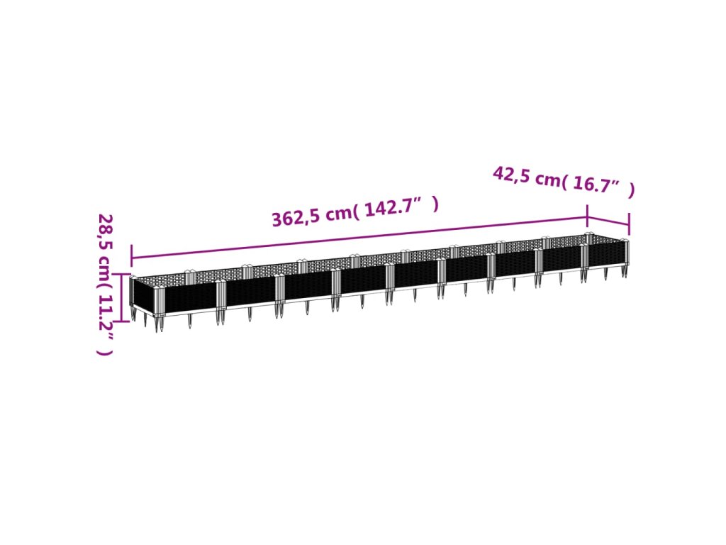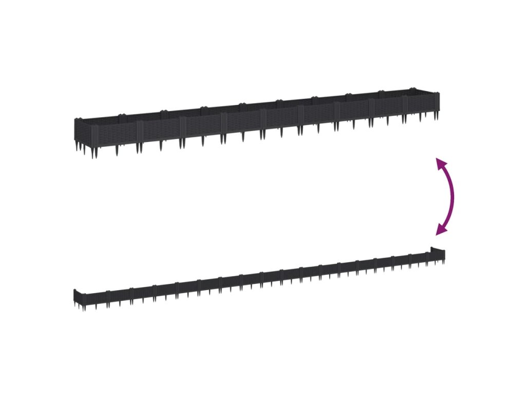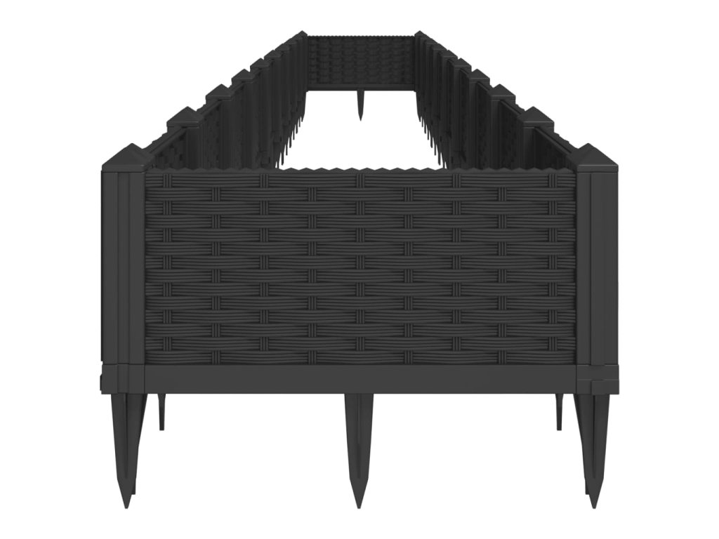 vidaXL Záhradný kvetináč s kolíkmi čierny 362,5x42,5x28,5 cm PP