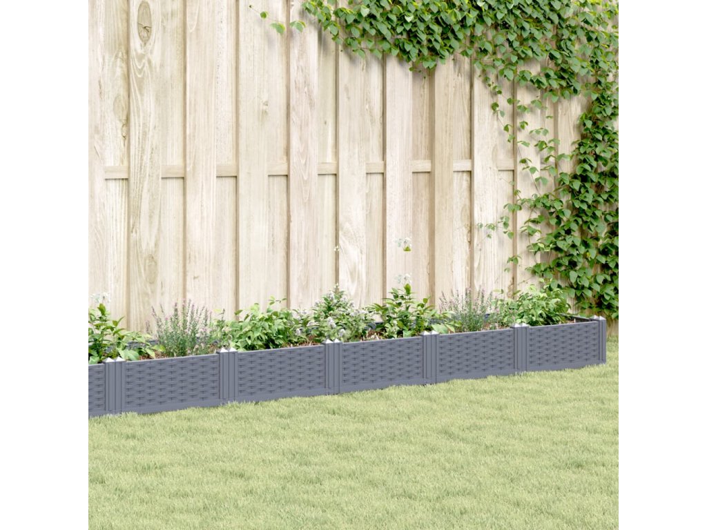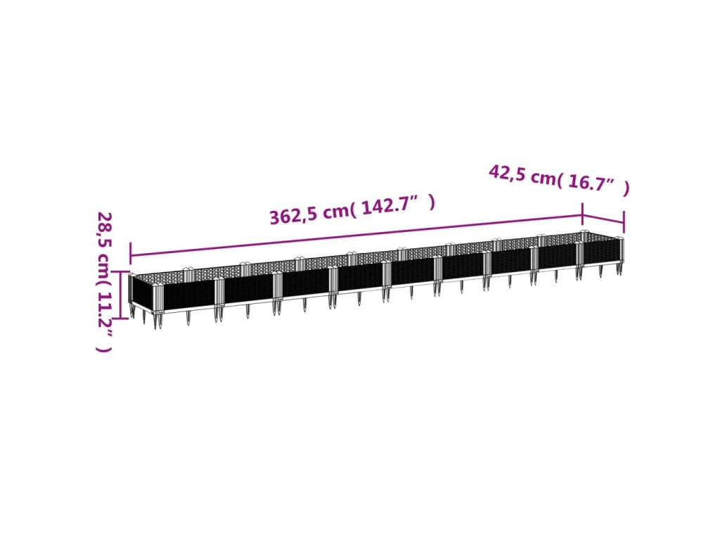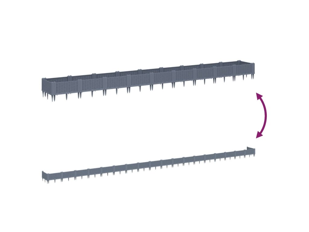 vidaXL Záhradný kvetináč s kolíkmi sivý 362,5x42,5x28,5 cm PP