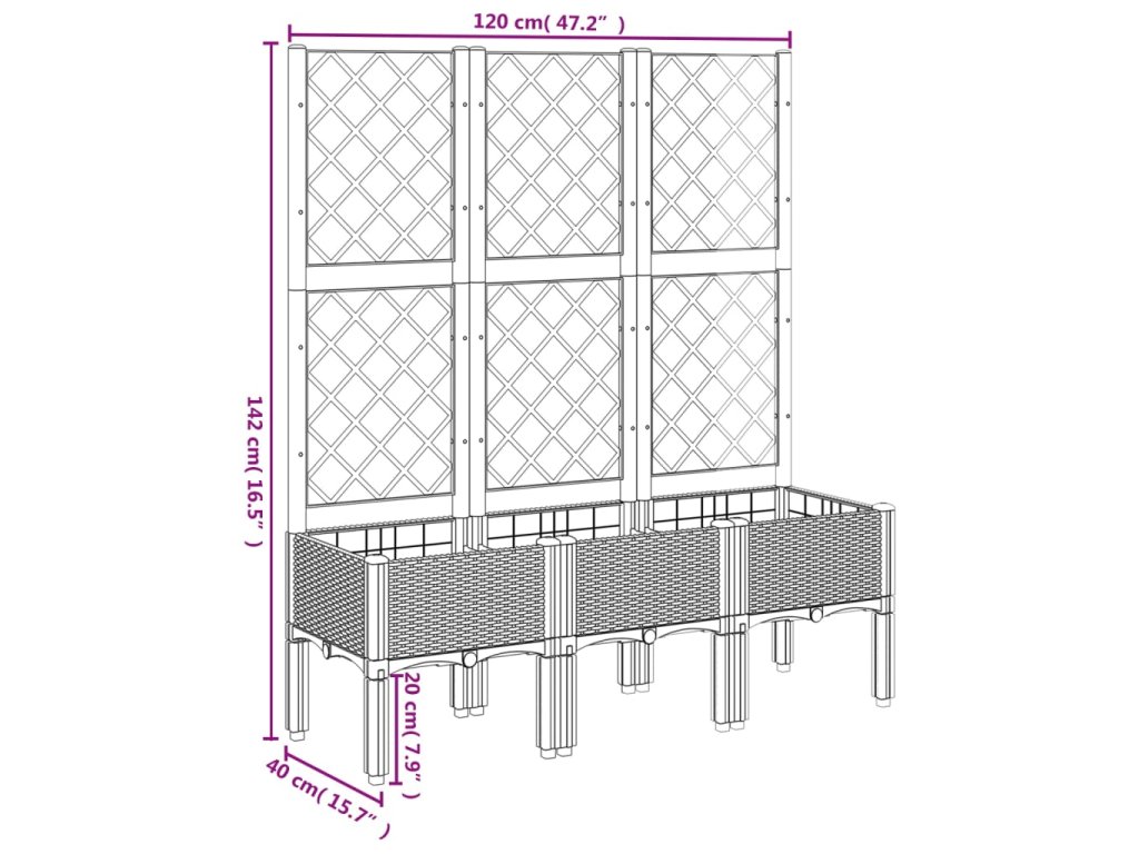 vidaXL Záhradný kvetináč s mriežkou, svetlosivý 120x40x142 cm, PP