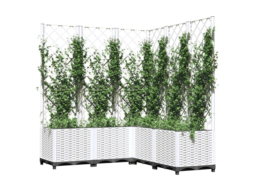 vidaXL Záhradný kvetináč s mriežkou biely 120x120x136 cm PP