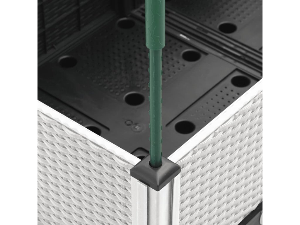 - Praktický dizajn: Ideálna spodná vrstva pomáha zadržiavať vlhkosť a umožňuje odtok vody. Integrovaná mriežka tiež ponúka skvelú podporu pre pestovanie popínavých rastlín, ako sú paradajky, hrach a ruže.