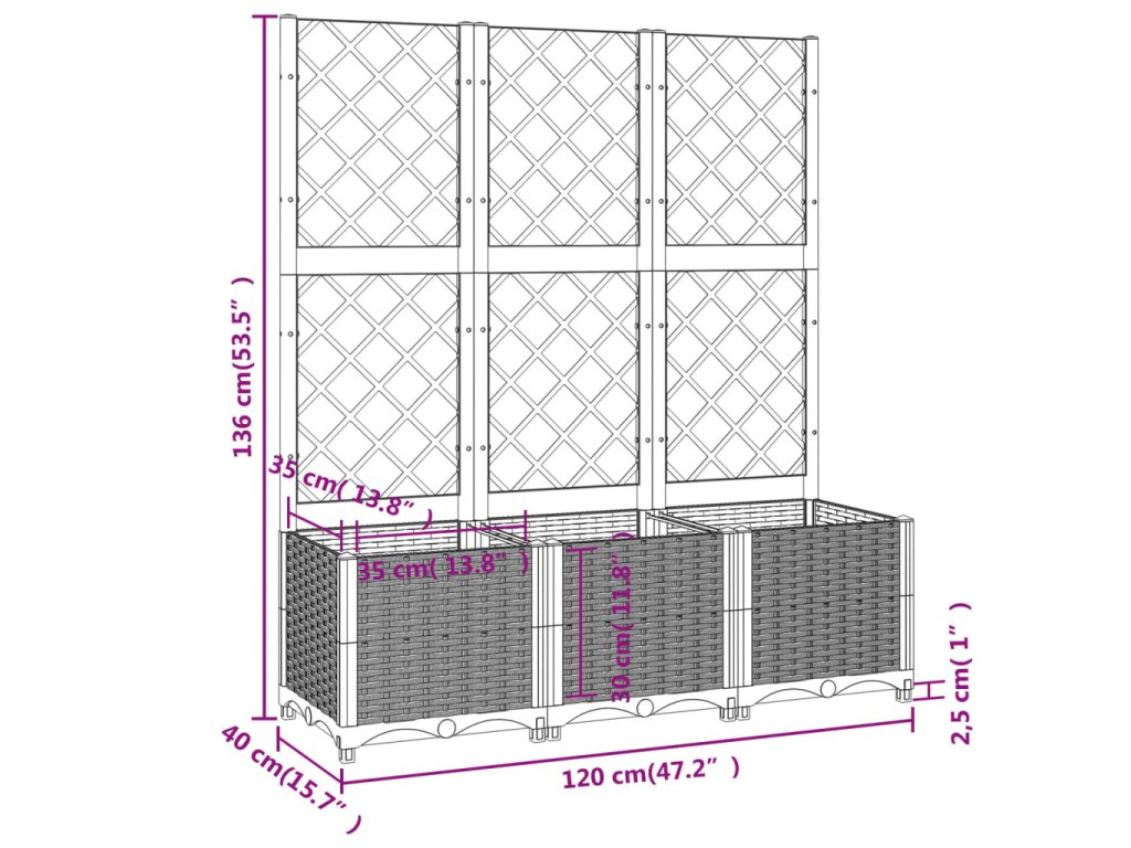 vidaXL Záhradný kvetináč s mriežkou bledsivý 120x40x136 cm PP