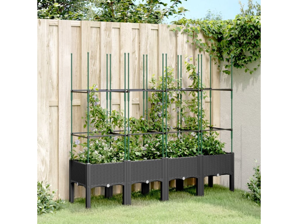 - Praktický dizajn: Ideálna spodná vrstva pomáha zadržiavať vlhkosť a umožňuje odtok vody. Integrovaná mriežka tiež ponúka skvelú podporu pre pestovanie popínavých rastlín, ako sú paradajky, hrach a ruže.