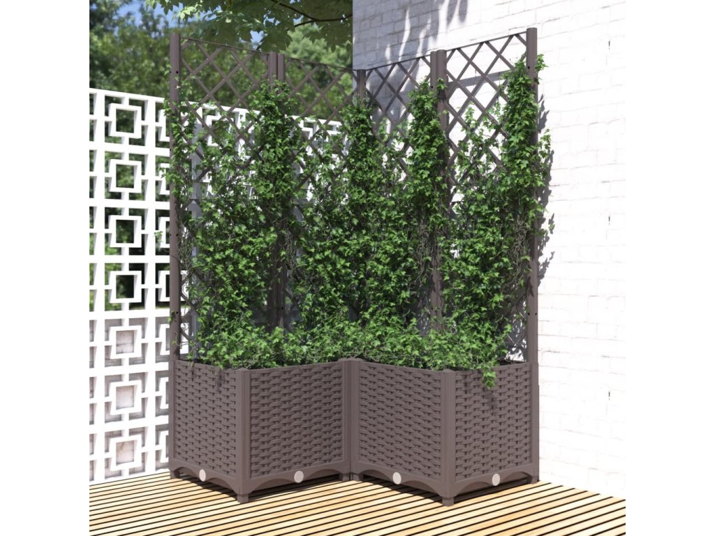 vidaXL Záhradný kvetináč s mriežkou hnedý 80x80x136 cm PP
