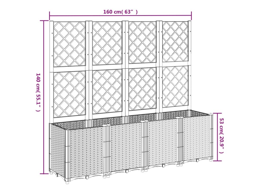 - Praktický dizajn: Ideálna spodná vrstva pomáha zadržiavať vlhkosť a umožňuje odtok vody. Integrovaná mriežka tiež ponúka skvelú podporu pre pestovanie popínavých rastlín, ako sú paradajky, hrach a ruže.