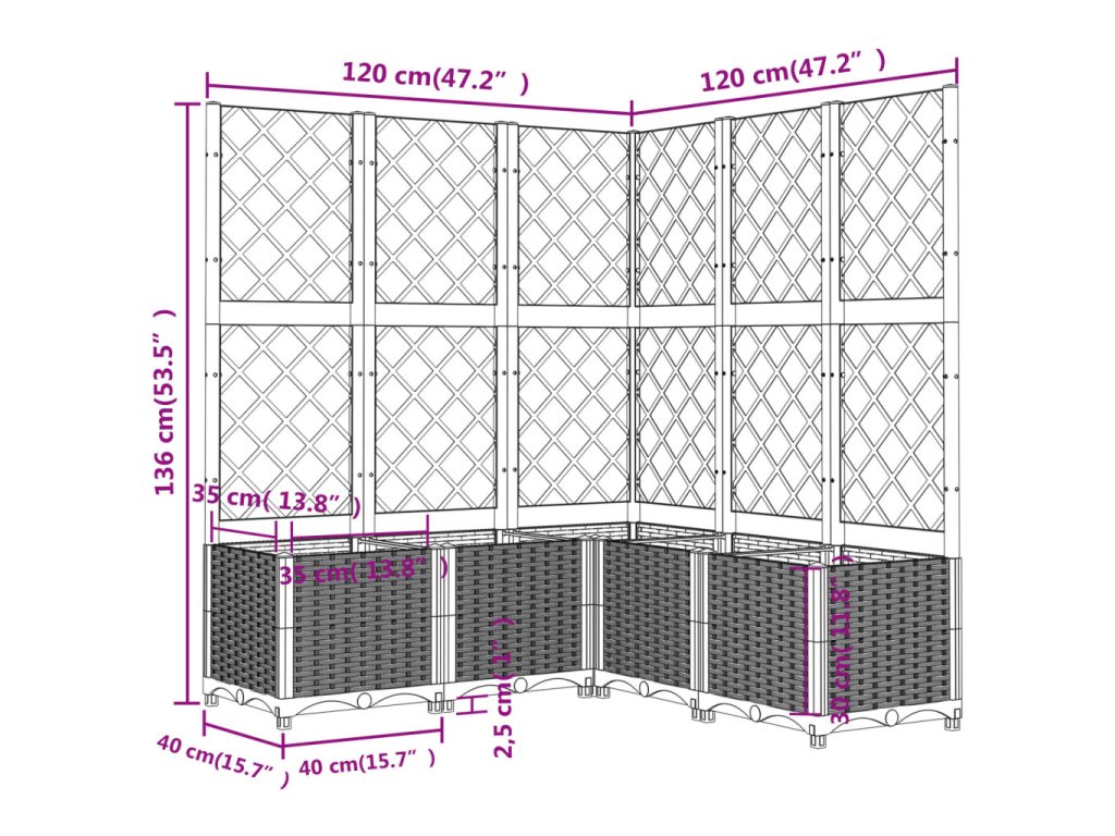 vidaXL Záhradný kvetináč s mriežkou svetlosivý 120x120x136 cm PP