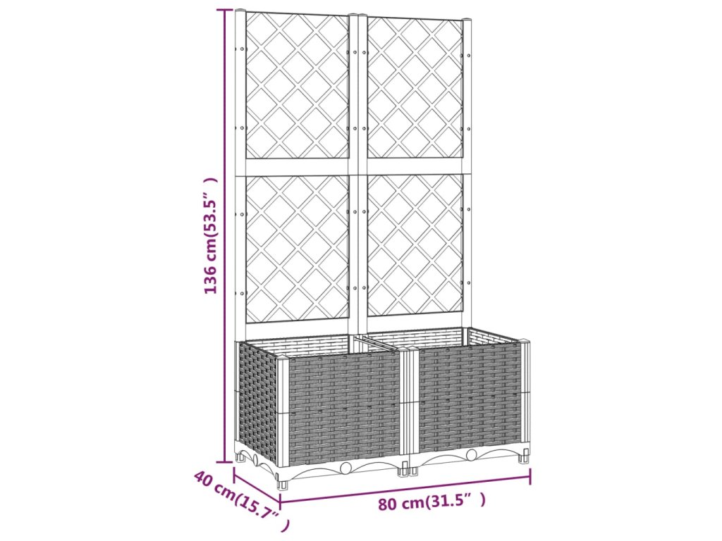 Tento kvetináč je vyrobený z PP odolného voči poveternostným vplyvom, je pevný a vhodný na vonkajšie použitie. Do spodného boxu sa zmestí veľké množstvo zelených rastlín a kvetov. Integrovaná mriežka ponúka skvelú podporu pre pestovanie popínavých rastlín, ako sú paradajky, hrach a ruže.