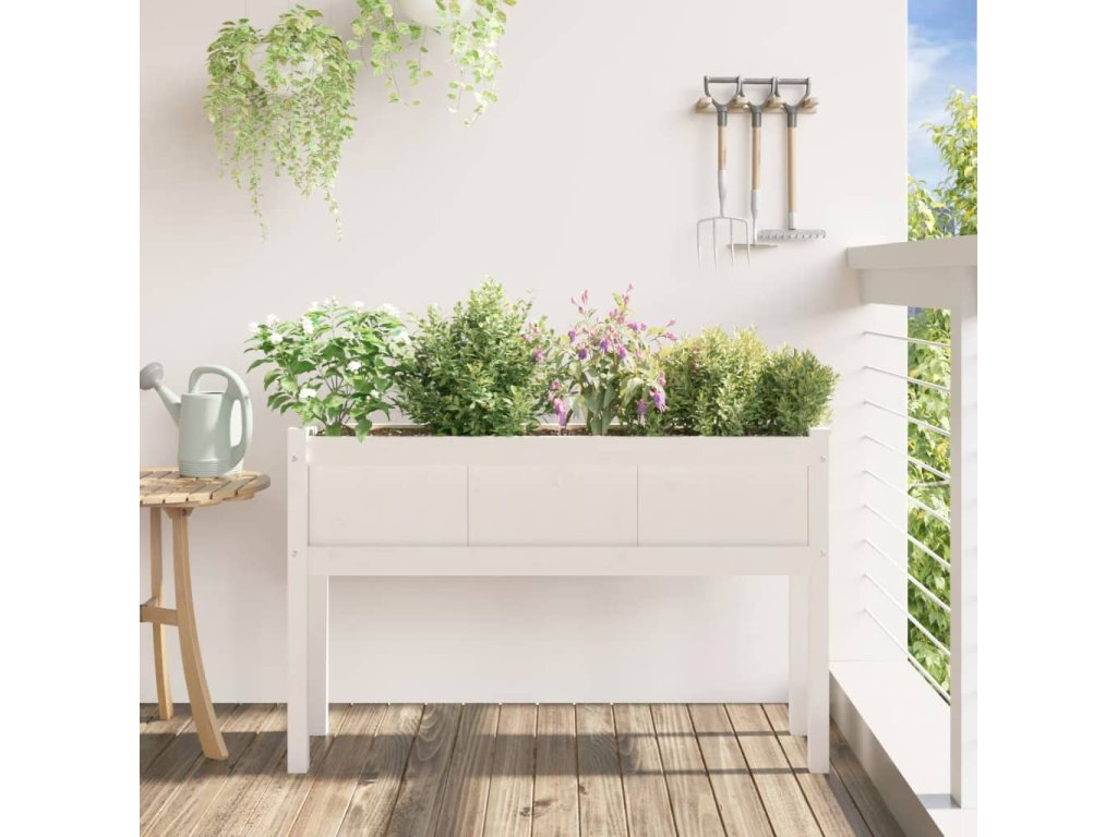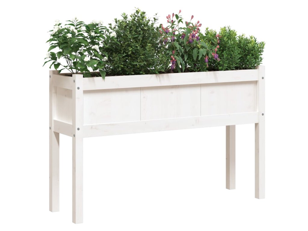 vidaXL Záhradný kvetináč s nohami biely 110x31x70 cm masívna borovica