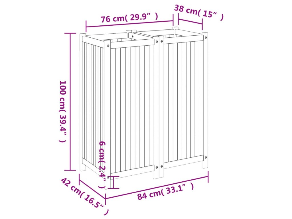 vidaXL Záhradný kvetináč s vložkou 84x42x100 cm, akáciový masív