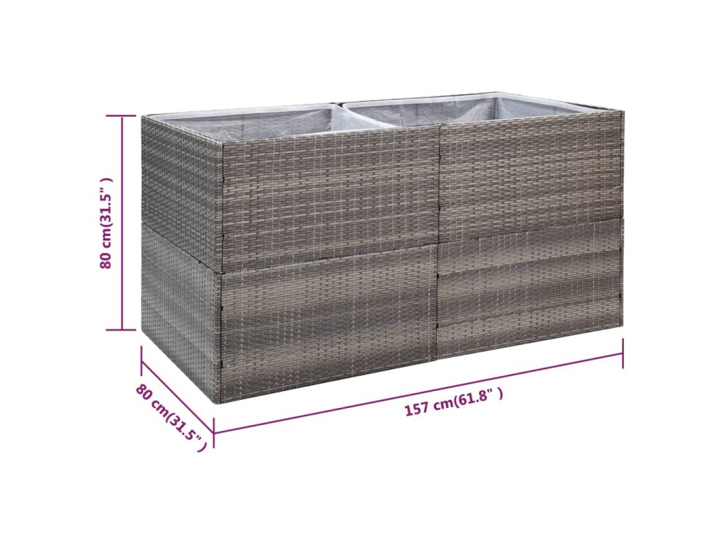 vidaXL Záhradný kvetináč sivý 157x80x80 cm polyratanový