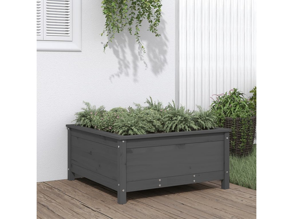 vidaXL Záhradný kvetináč sivý 82,5x82,5x39 cm borovicový masív