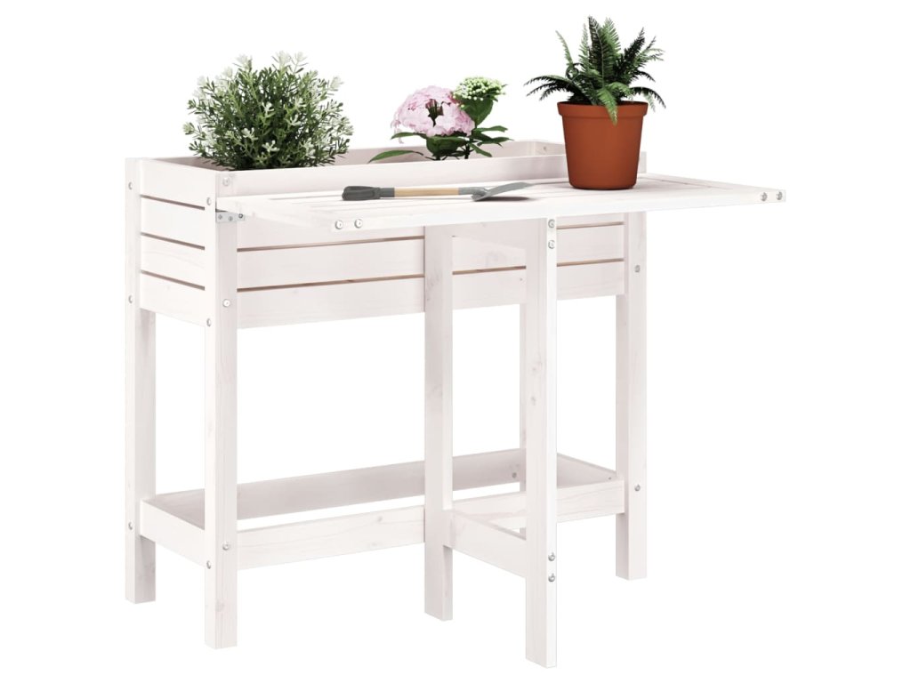 vidaXL Záhradný kvetináč so skladacou doskou biely masívna borovica