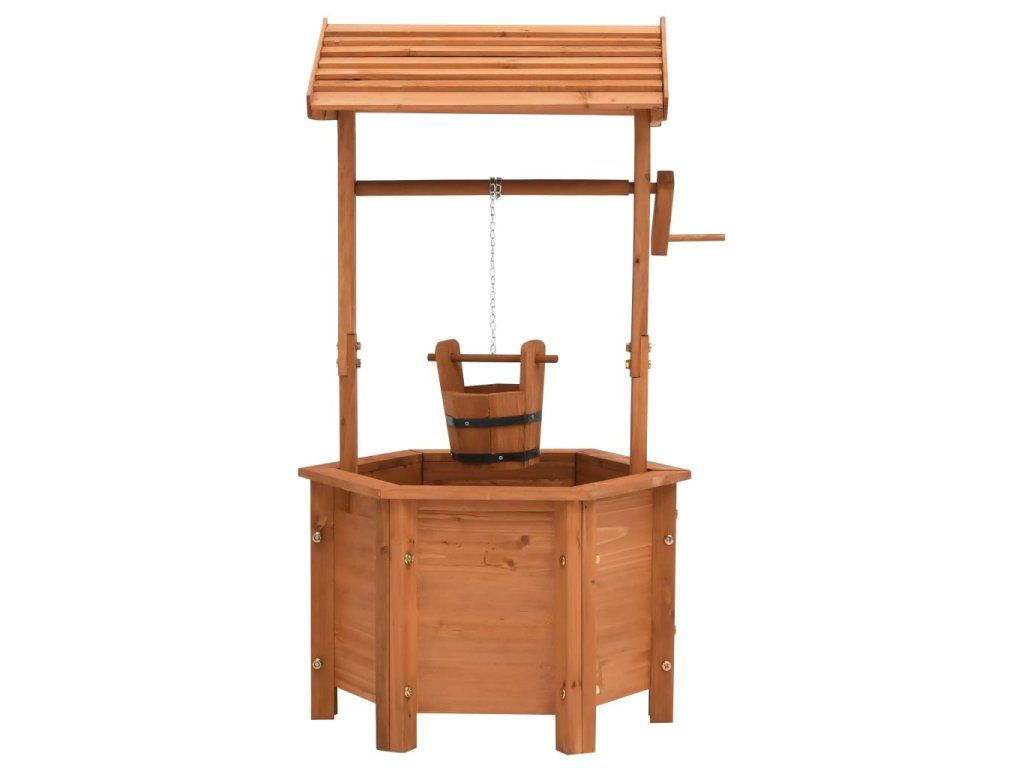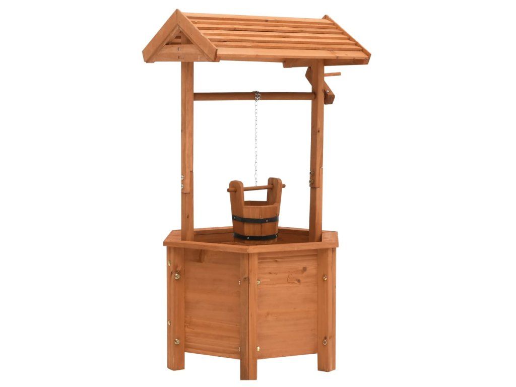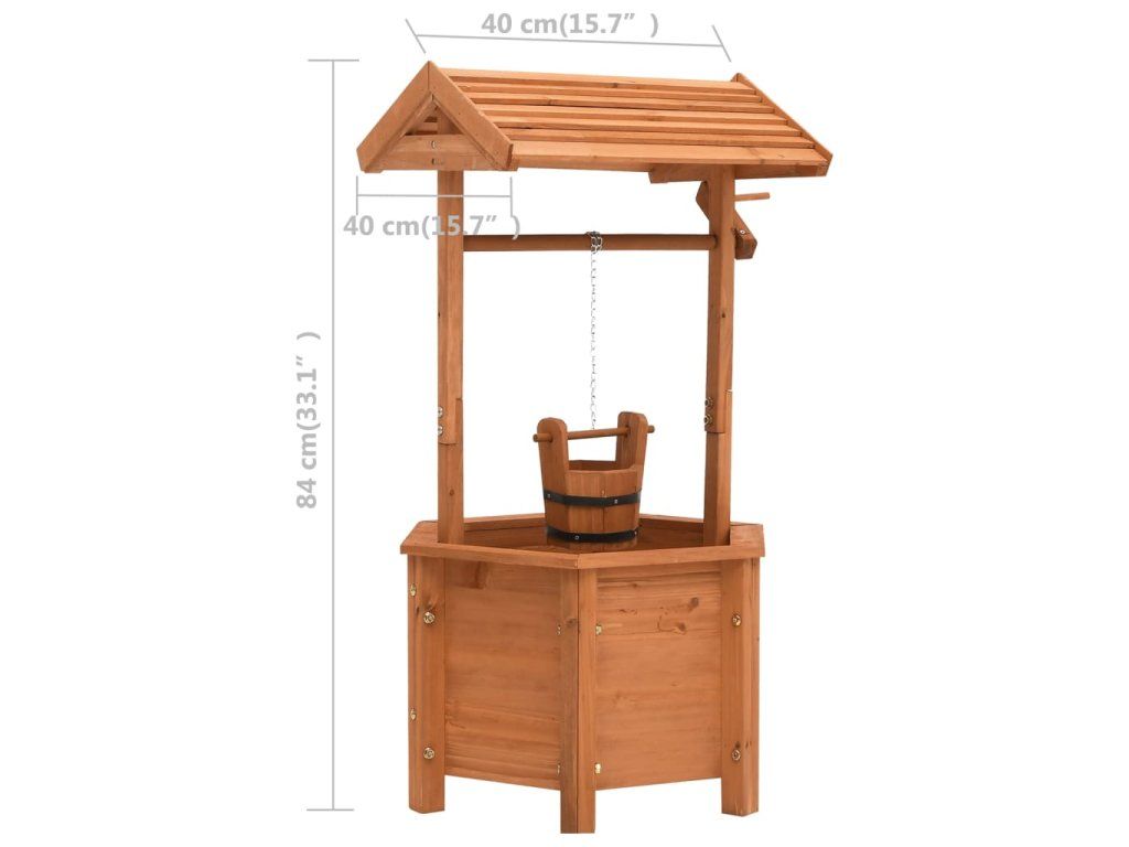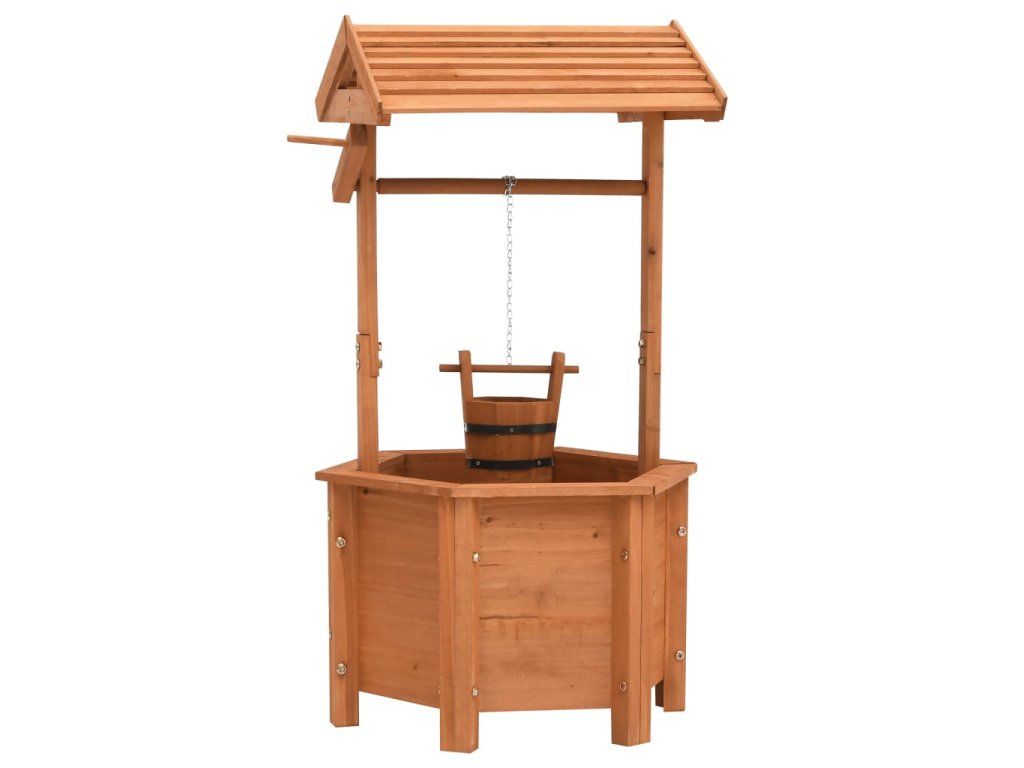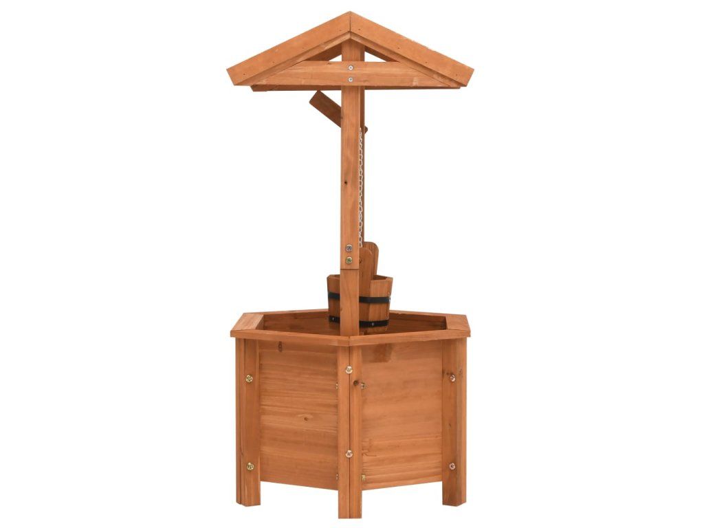 Pozrite sa na tento štýlový a pôvabný drevený kvetináč studňa prianí! Bude to vynikajúca dekorácia vášho trávnika, dvora, záhrady a iných vonkajších obytných priestorov.