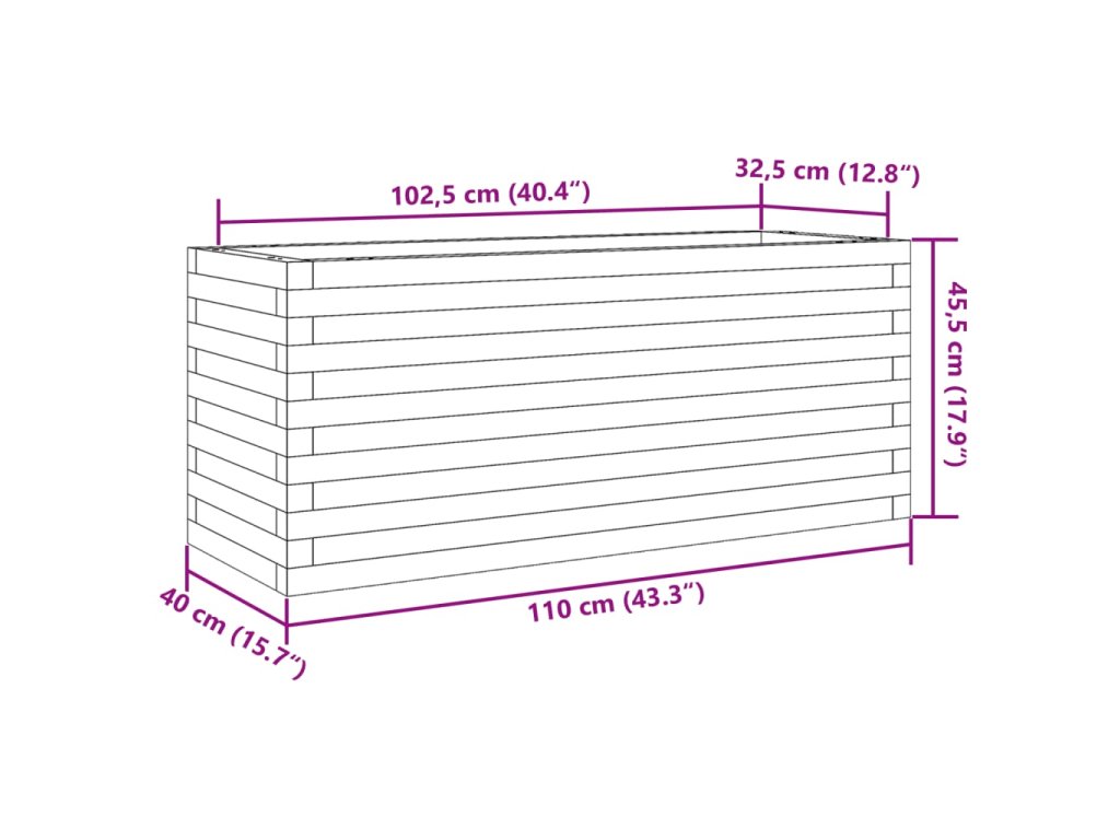 vidaXL Záhradný kvetináč voskovohnedý 110x40x45,5 cm masívna borovica