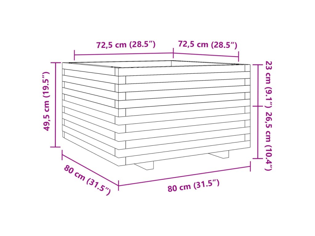 vidaXL Záhradný kvetináč voskovohnedý 80x80x49,5 cm masívna borovica