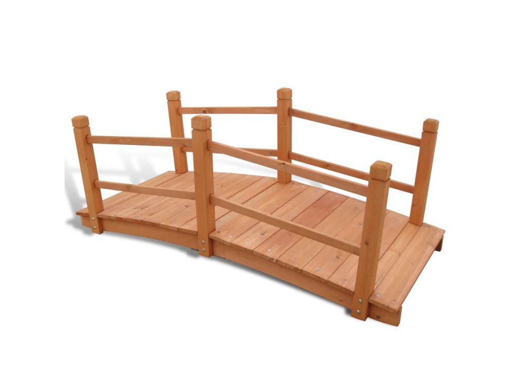 Tento ozdobný drevený mostík je 140 cm dlhý. Dá sa použiť na prechod cez potok, ale hodí sa aj na premostenie kvetinového záhona. Dvojité zábradlie mu dodáva ešte väčší šarm.