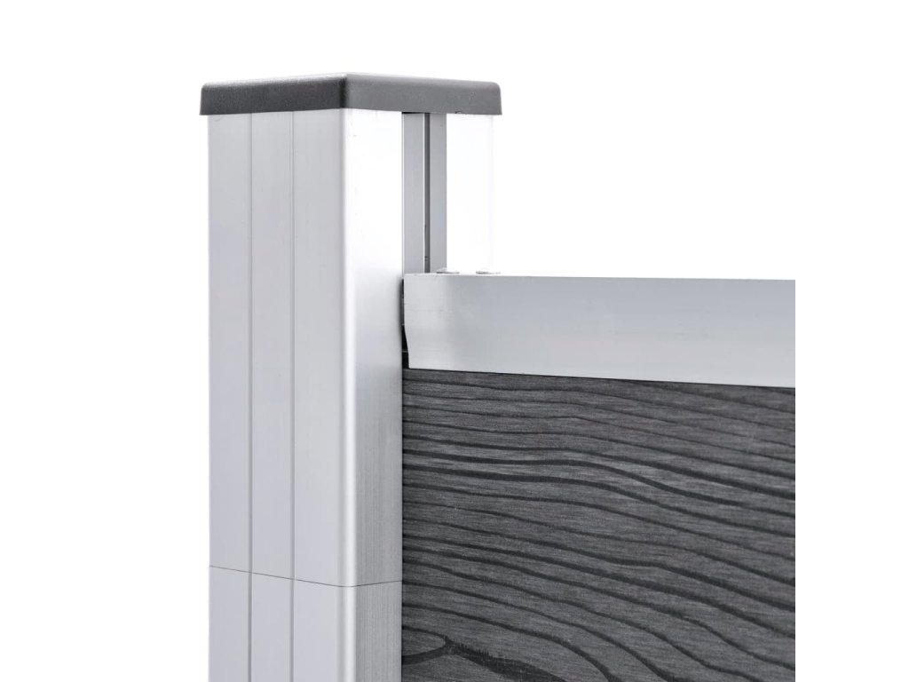 Plot z WPC má na jednej strane potlač dreva a na druhej strane potlač s pravidelným vzorom, takže si môžete vybrať ten dizajn, ktorý sa vám viac páči. Náš drevoplastový panel si nevyžaduje žiadnu ďalšiu úpravu, ako napríklad olejovanie alebo natieranie. Je veľmi trvácny a odolný voči hnilobe alebo hrdzi. Vďaka hliníkovému hornému profilu sa môžu plotové dosky k sebe tesne pripojiť, čo zvyšuje ich pevnosť a odolnosť voči nárazu. Plotové dosky s modulárnym dizajnom sa jednoducho montujú a umožnia vám plot v prípade potreby rozšíriť. Stĺpiky majú tri otvory, aby ste plot mohli zostaviť rôznymi spôsobmi, napríklad v priamej línii (180°), do pravého uhla (90°) alebo do tvaru písmena T. V balení sa nachádza 90 dosiek z WPC, 11 stĺpikov a 10 hliníkových tyčí.