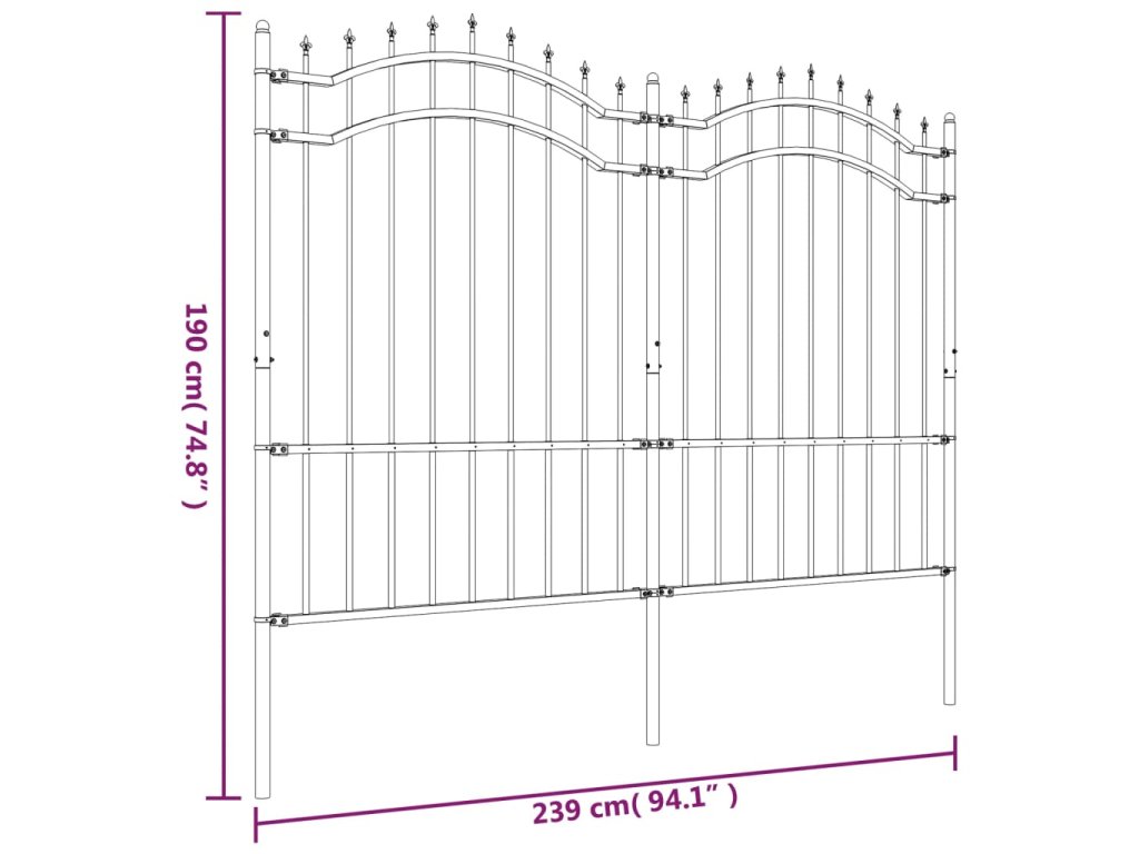 vidaXL Záhradný plot s hrotmi čierny 190 cm oceľ s práškovým nástrekom