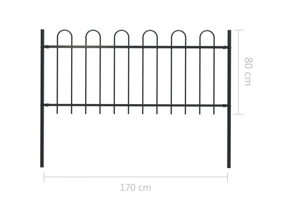 vidaXL Záhradný plot s oblúkovým zakončením, oceľ 1,7 m, čierny