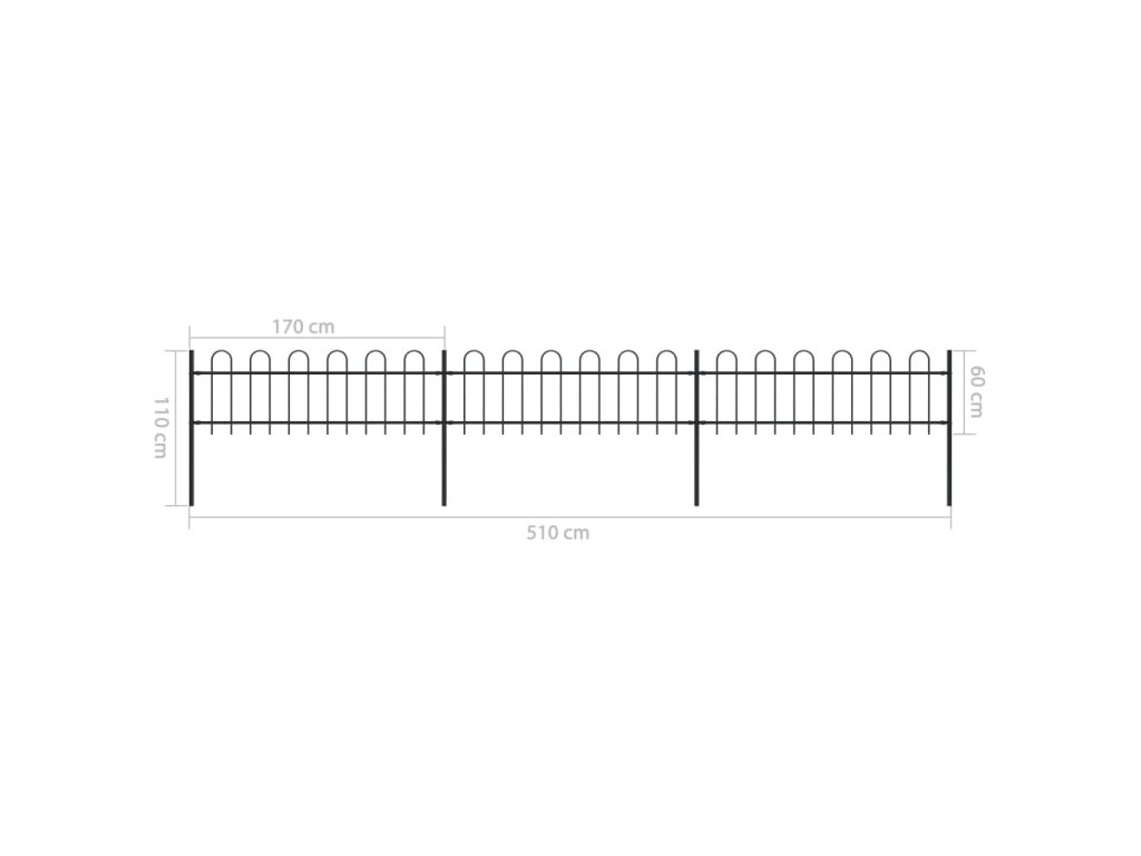 vidaXL Záhradný plot s oblúkovým zakončením, oceľ 5,1x0,6 m, čierny
