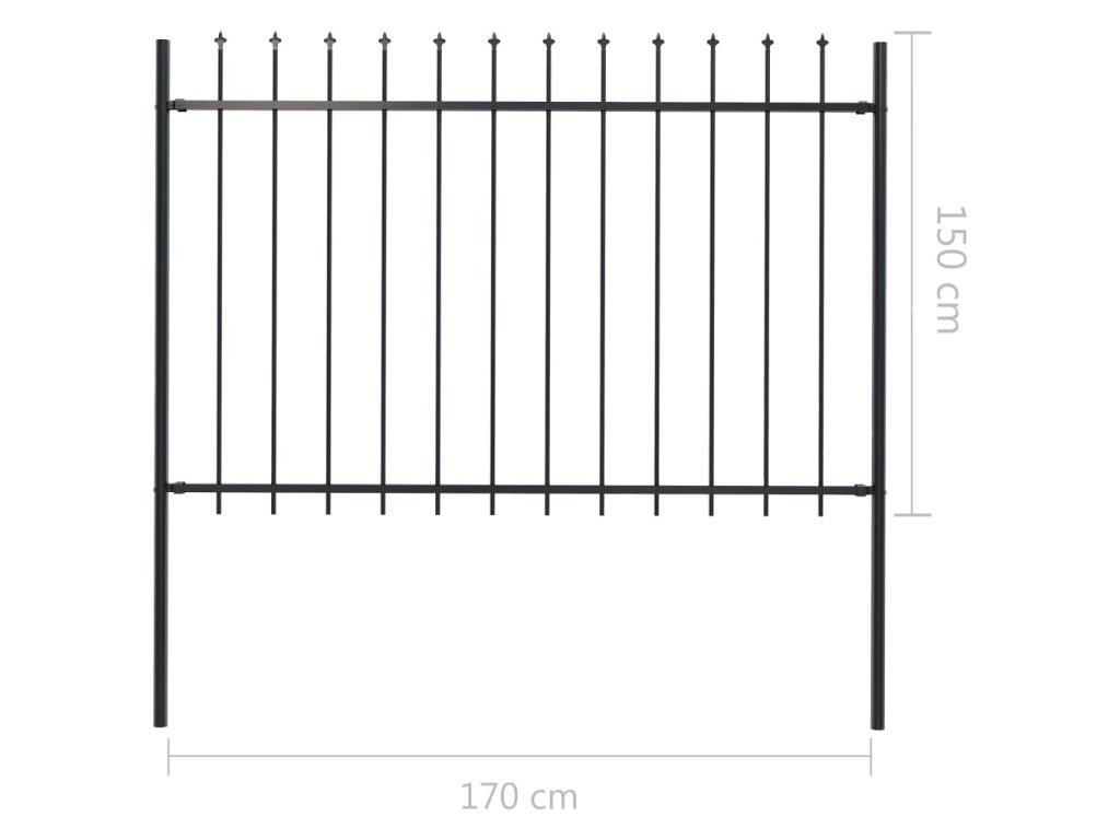 vidaXL Záhradný plot so špicatými vrchmi čierny oceľový 1,7x1,5 m