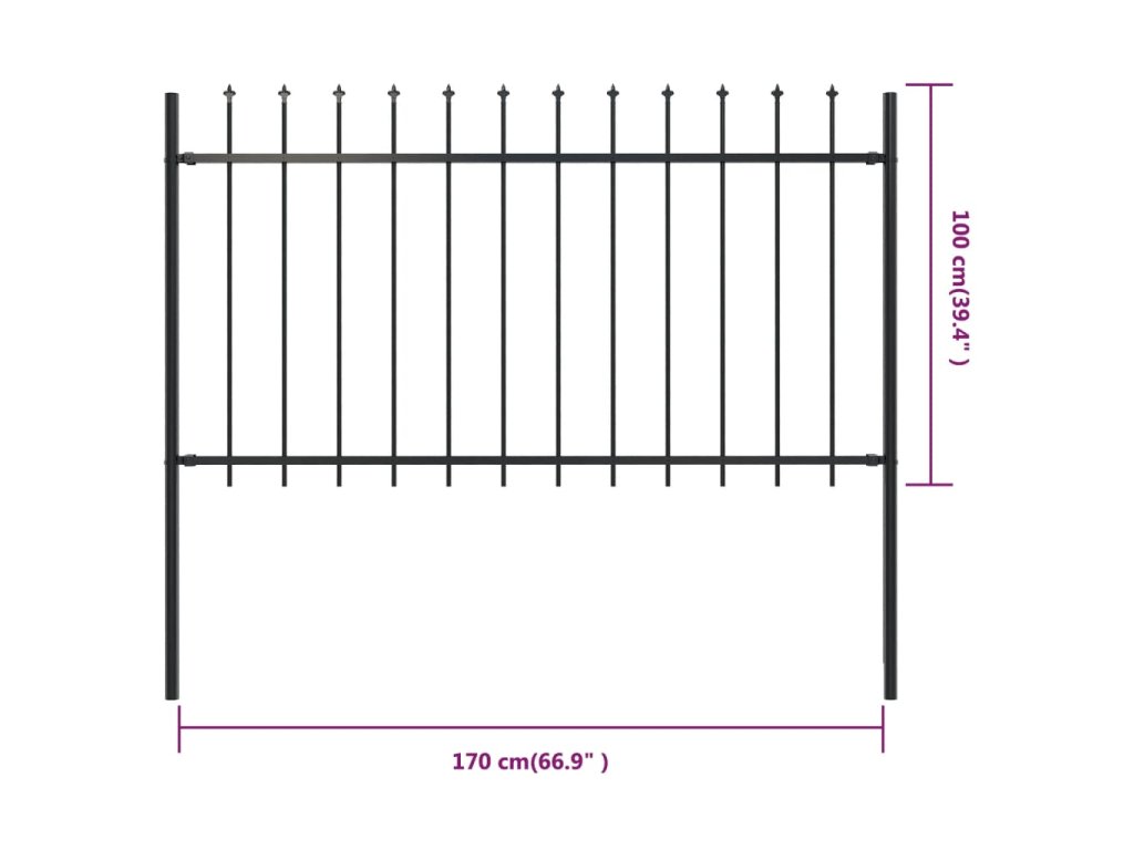 vidaXL Záhradný plot so špicatými vrchmi čierny oceľový 1,7x1 m