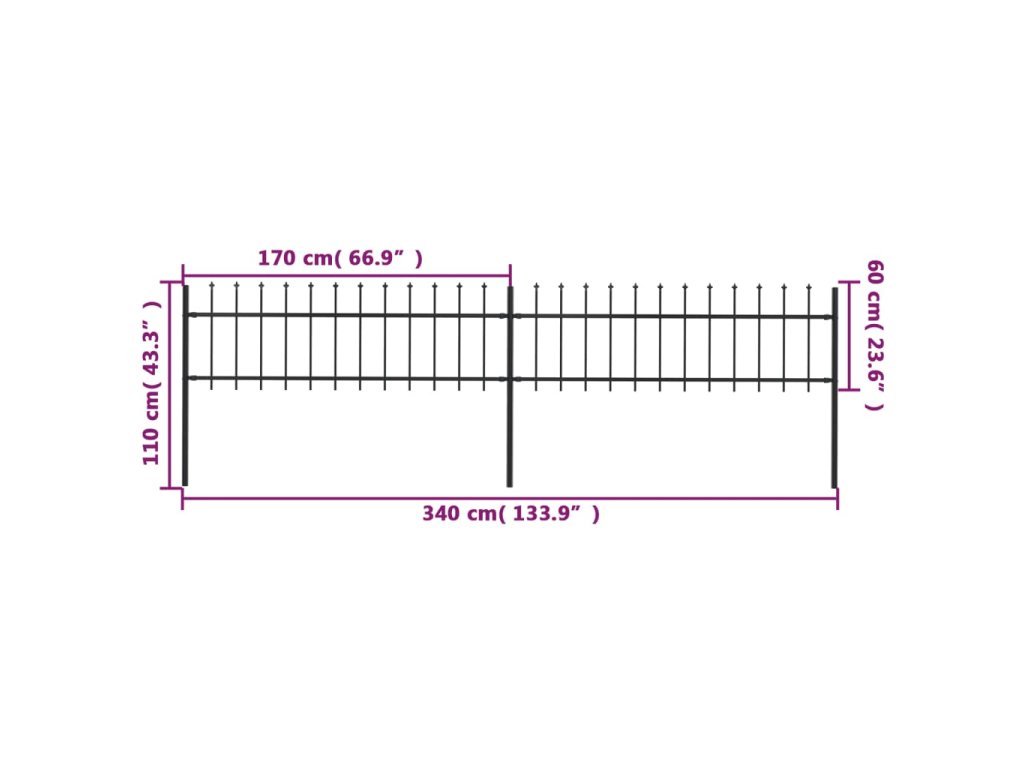 vidaXL Záhradný plot so špicatými vrchmi čierny oceľový 3,4x0,6 m