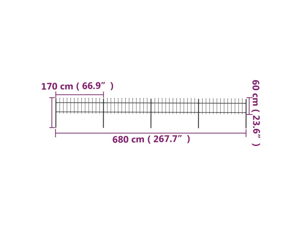 vidaXL Záhradný plot so špicatými vrchmi čierny oceľový 6,8x0,6 m