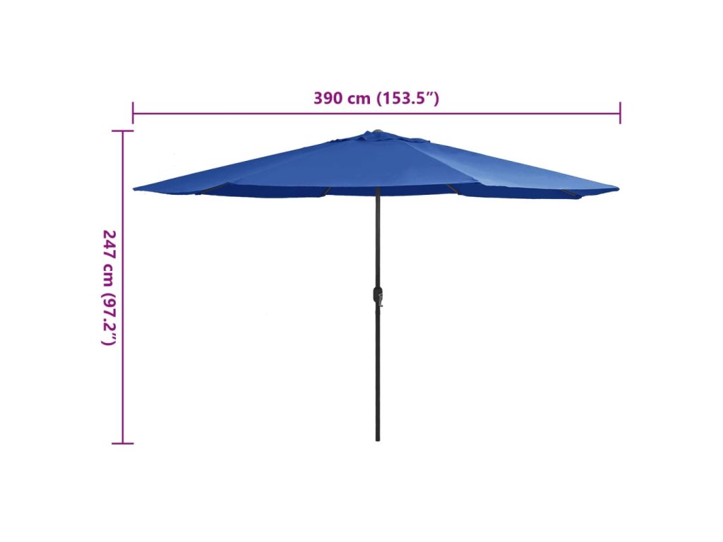 vidaXL Záhradný slnečník, kovová tyč 390 cm, azúrový