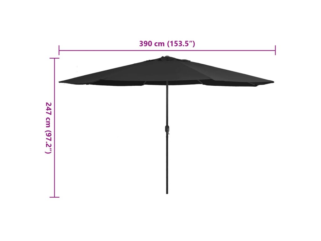 vidaXL Záhradný slnečník, kovová tyč 390 cm, čierny