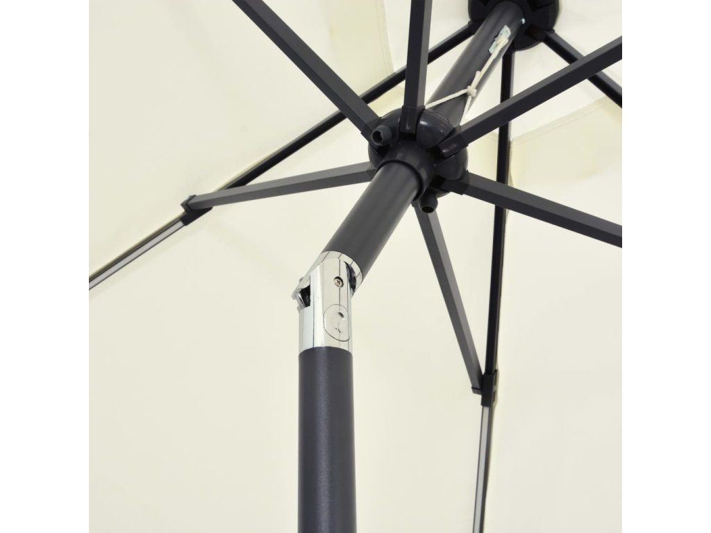 Slnečník je vyrobený z polyesteru, ktorý nevybledne a je odolný voči UV žiareniu, vďaka čomu vám poskytne optimálnu ochranu pred slnkom a ľahko sa čistí. Pevná hliníková tyč spolu so 6 robustnými rebrami zabezpečuje výbornú stabilitu a dlhú životnosť slnečníka. Záhradný slnečník sa dá jednoducho otvárať a zatvárať pomocou kľukového mechanizmu. Zabudované LED svetla v noci vytvoria príjemnú a romantickú atmosféru. Výrobok sa jednoducho montuje.