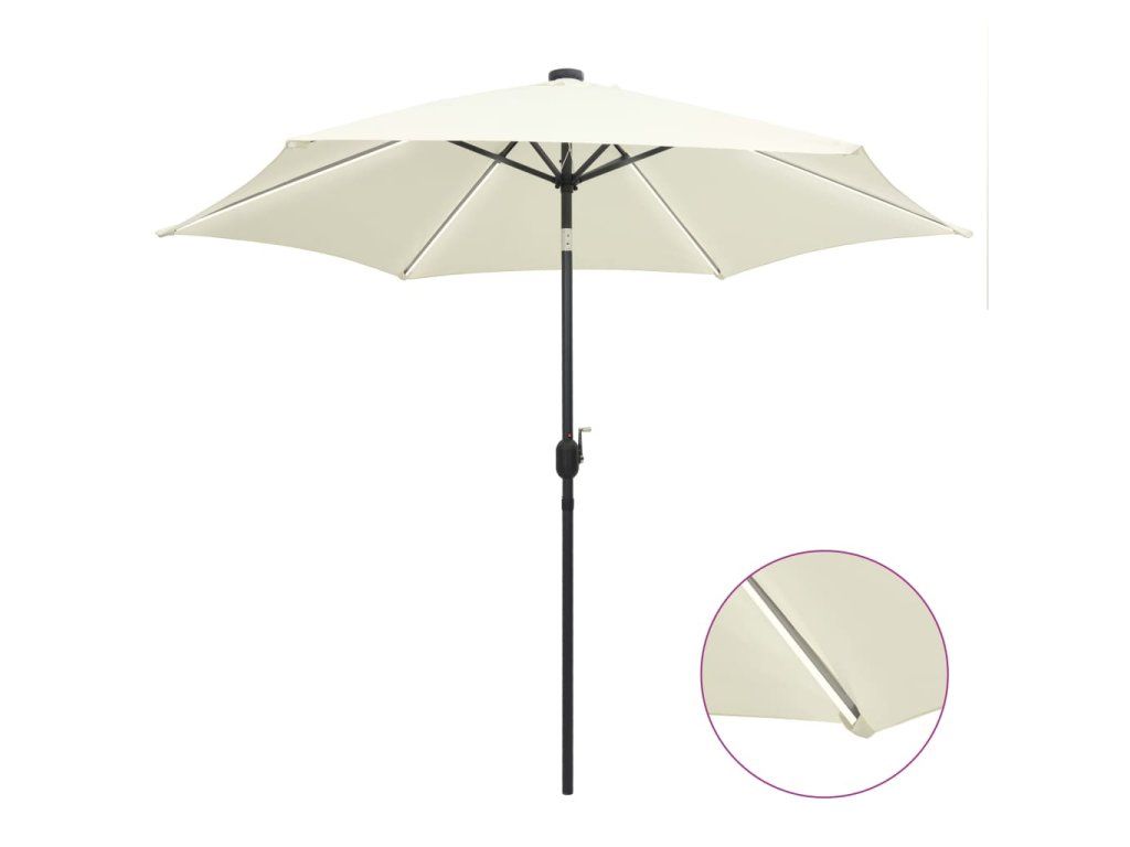 vidaXL Záhradný slnečník s LED, hliníková tyč 300 cm, pieskovo biely