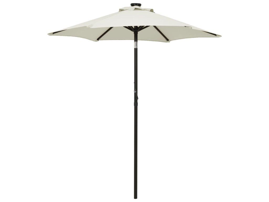 Skladací a prenosný slnečník je vybavený kľukou a sklopným dizajnom. Strecha slnečníka je vyrobená z polyesteru, ktorý je odolný voči UV žiareniu, nebledne a poskytne vám optimálnu ochranu pred slnkom. Pevná hliníková tyč s práškovou povrchovou úpravou spolu so 6 pevnými kovovými rebrami zabezpečí stabilitu a zvýšenú trvácnosť slnečníka, aby ste ho mohli využívať celé roky. Tento terasový slnečník je navyše vybavený 12 LED diódami, ktoré osvetlia váš vonkajší obytný priestor a vytvoria útulné a romantické prostredie pri západe slnka.