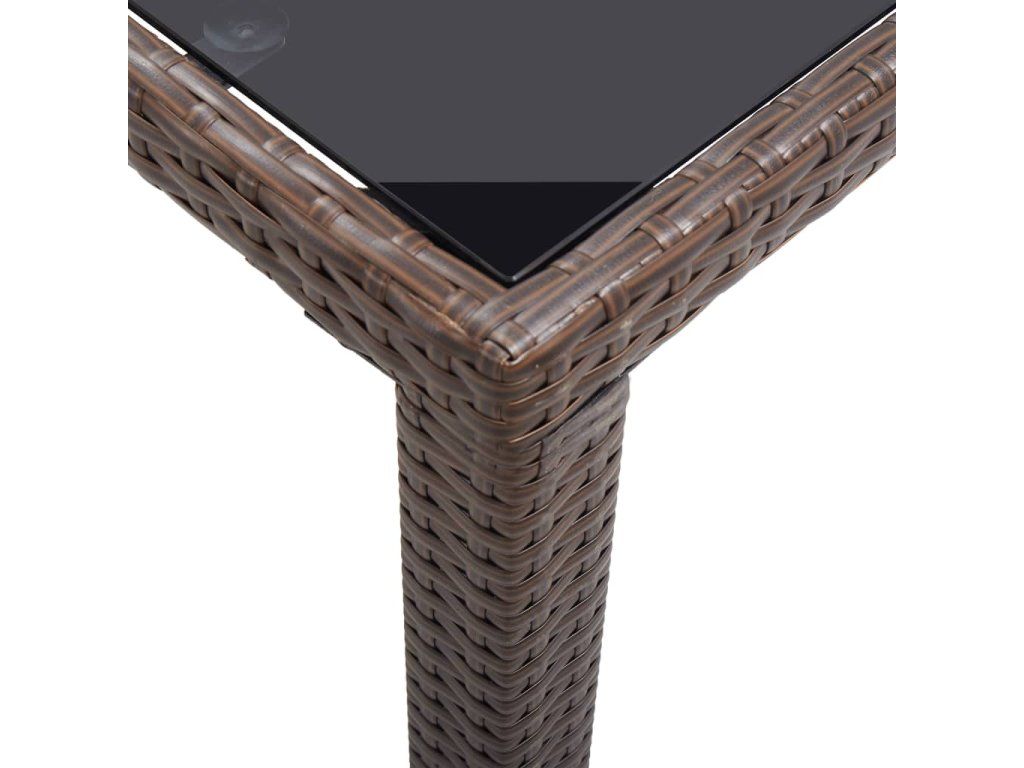 Záhradný stôl je vyrobený z vodeodolného a bezúdržbového PE ratanu, čo umožňuje jeho ľahké čistenie vlhkou handričkou. Bude ideálny pre vonkajšie použitie. Vďaka svojmu oceľovému rámu je tento stôl veľmi stabilný a bezpečný. Sklenená stolová doska navyše dodá vášmu vonkajšiemu priestoru dotyk prepychu. Tento jedálenský stôl s dĺžkou 123 cm ponúka dostatok priestoru pre vaše jedálenské doplnky, riad, alebo jedlo atď. Tento stôl sa jednoducho montuje.