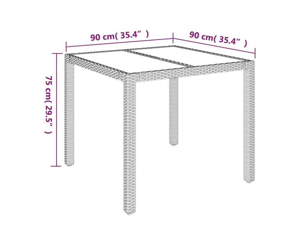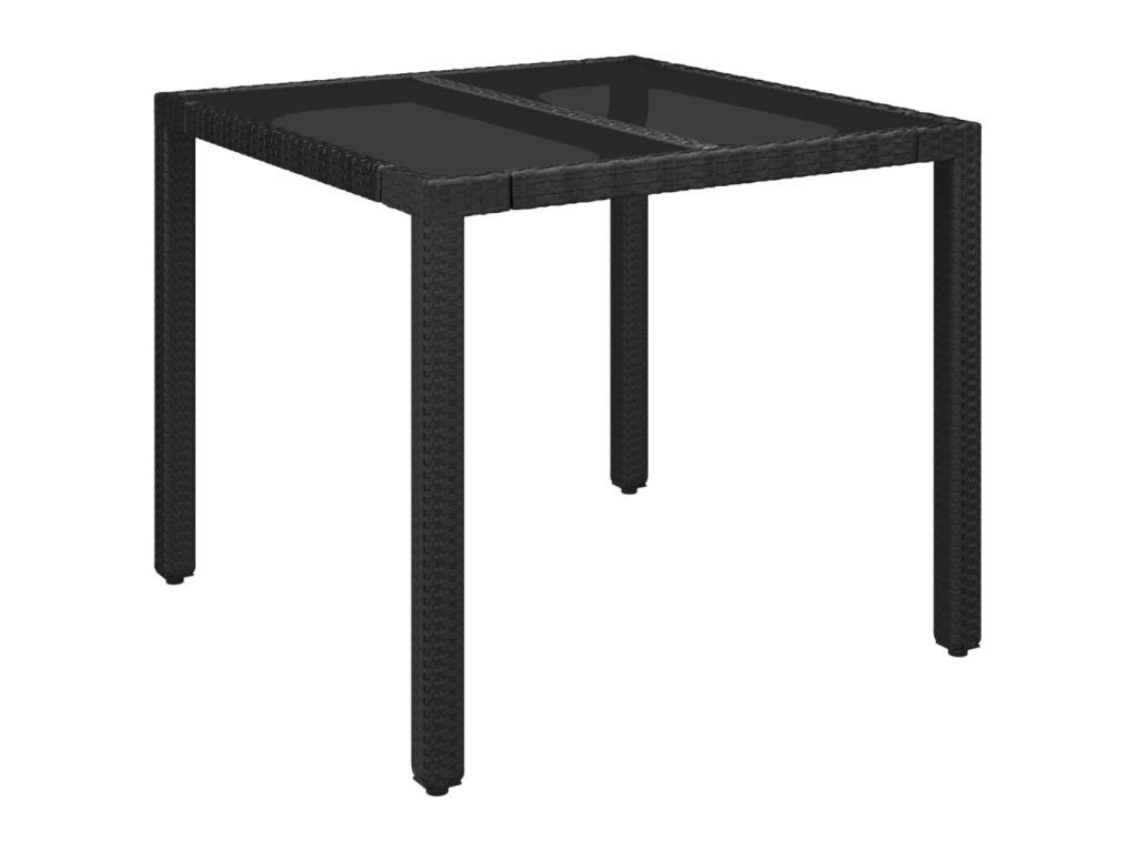 vidaXL Záhradný stôl so sklenenou doskou čierny 90x90x75 cm polyratan