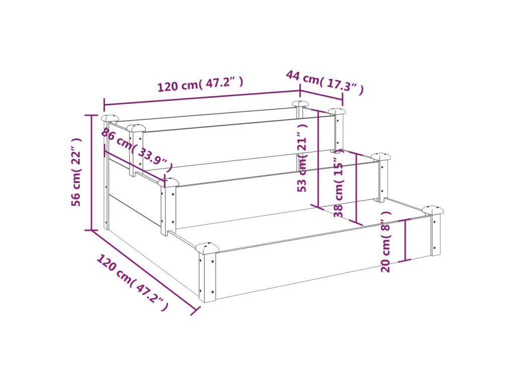 - Dizajn schodov: Tento vyvýšený záhon je navrhnutý s 3 rôznymi hĺbkami je ideálny na pestovanie rastlín a zeleniny s dĺžkou koreňov od krátkych po stredné a dlhé.