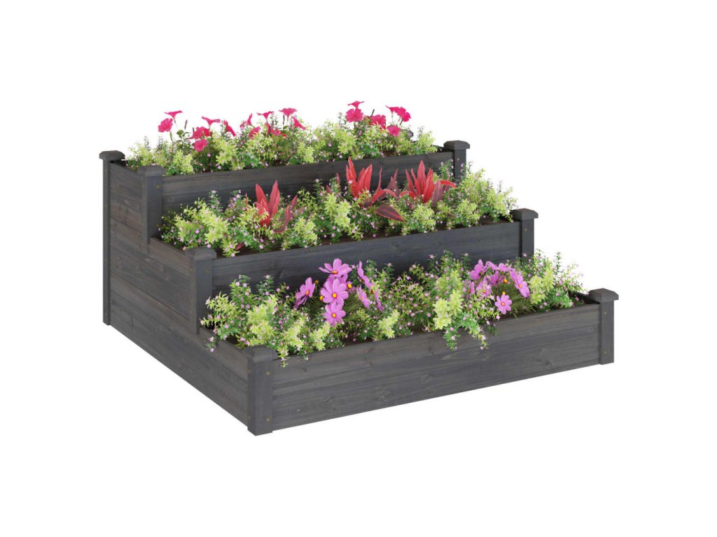- Dizajn schodov: Tento vyvýšený záhon je navrhnutý s 3 rôznymi hĺbkami je ideálny na pestovanie rastlín a zeleniny s dĺžkou koreňov od krátkych po stredné a dlhé.