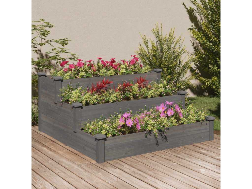 vidaXL Záhradný vyvýšený záhon sivý 120x120x56 cm masívna jedľa