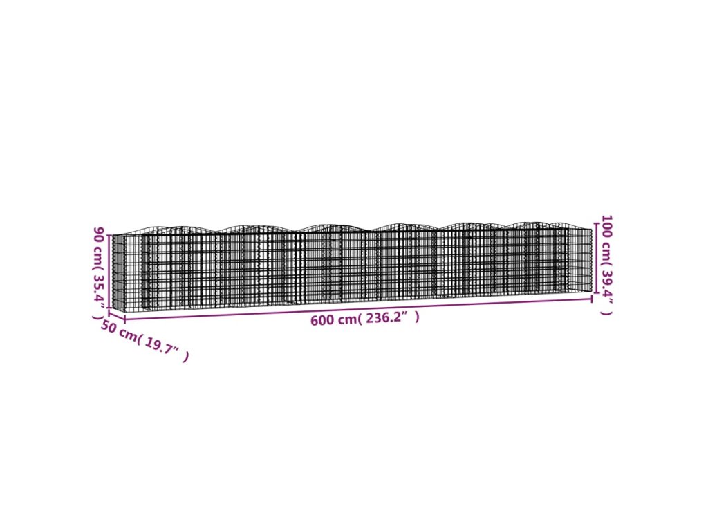 vidaXL Zaoblený gabiónový záhon 600x50x100 cm, pozinkované železo
