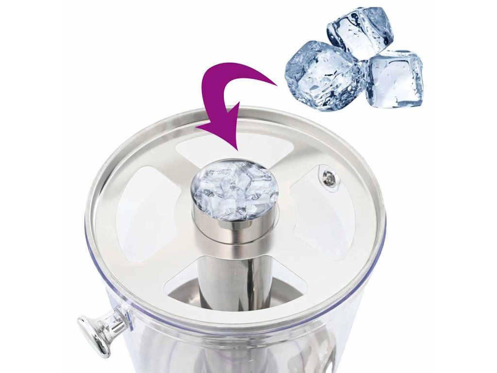 Dávkovač na nápoje má kapacitu 8 litrov. Zásobník s čapovacím kohútikom je vhodný pre poháre s maximálnou výškou 15,5 cm. Na vychladenie nápojov je možné dať ľad do valca v strede. Odkvapkávacia miska nazhromaždí rozliate nápoje. Pri čistení sa dá miska ľahko vybrať a vyprázdniť.