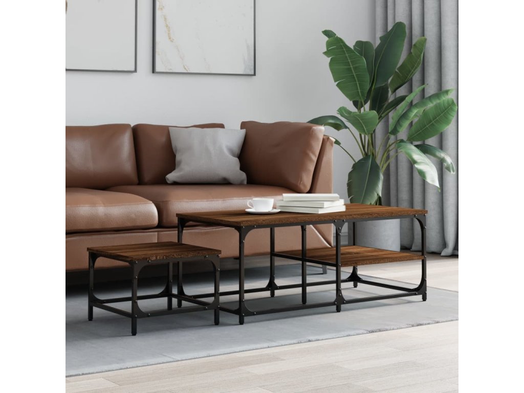 vidaXL Zasúvacie konferenčné stolíky 2 ks hnedý dub kompozitné drevo